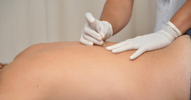 LaPunciónSecaenunatécnicadefisioterapiainvasivaque consisteenlaintroduccióndeunaagujademuypequeñocalibre enunpuntomuyconcretodentrodeunmúsculodisfuncional.Se dicequees¨seca¨porquenointroducimosningúntipode medicamento. Elobjetivodelatécnicaeseliminarfocosdehiperactividad muscularpresentesenelpacientedurantelaexploraciónde fisioterapia,yqueenunaltoporcentajesoncausarecurrentede dolor.Dependiendodelaprofundidaddelmúsculoestaremosante técnicasmassuperficialesoprofundassiendoenesteúltimocaso necesario el uso de ecografía.